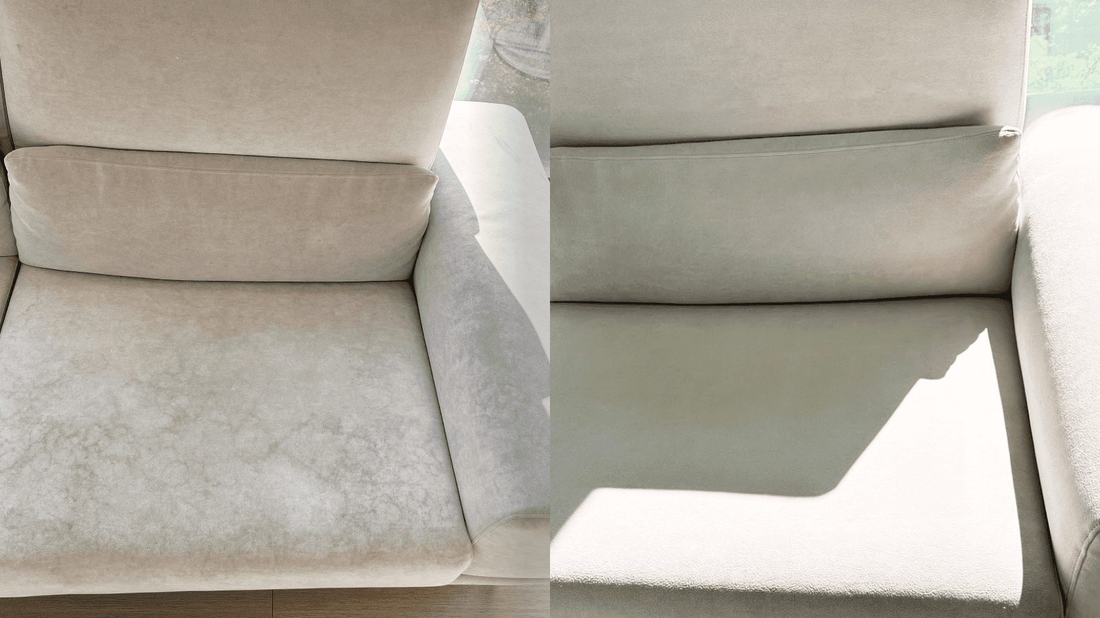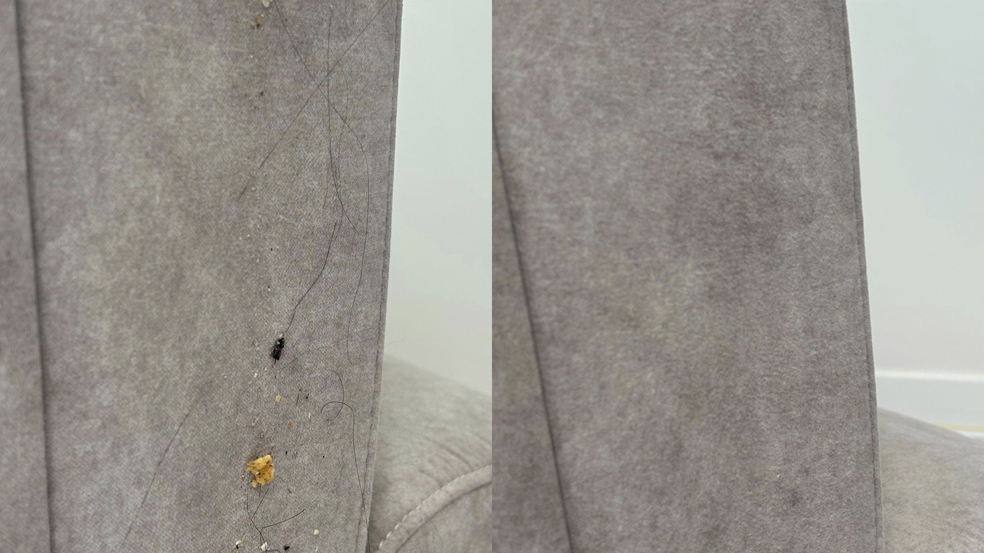 반려동물의 털과 흔적으로 가득찼던 소파.
