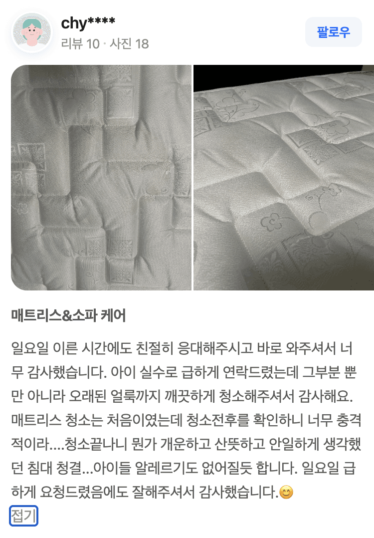 고객님께서 “버리려고까지 고민했는데 새 매트리스 같아졌다”며