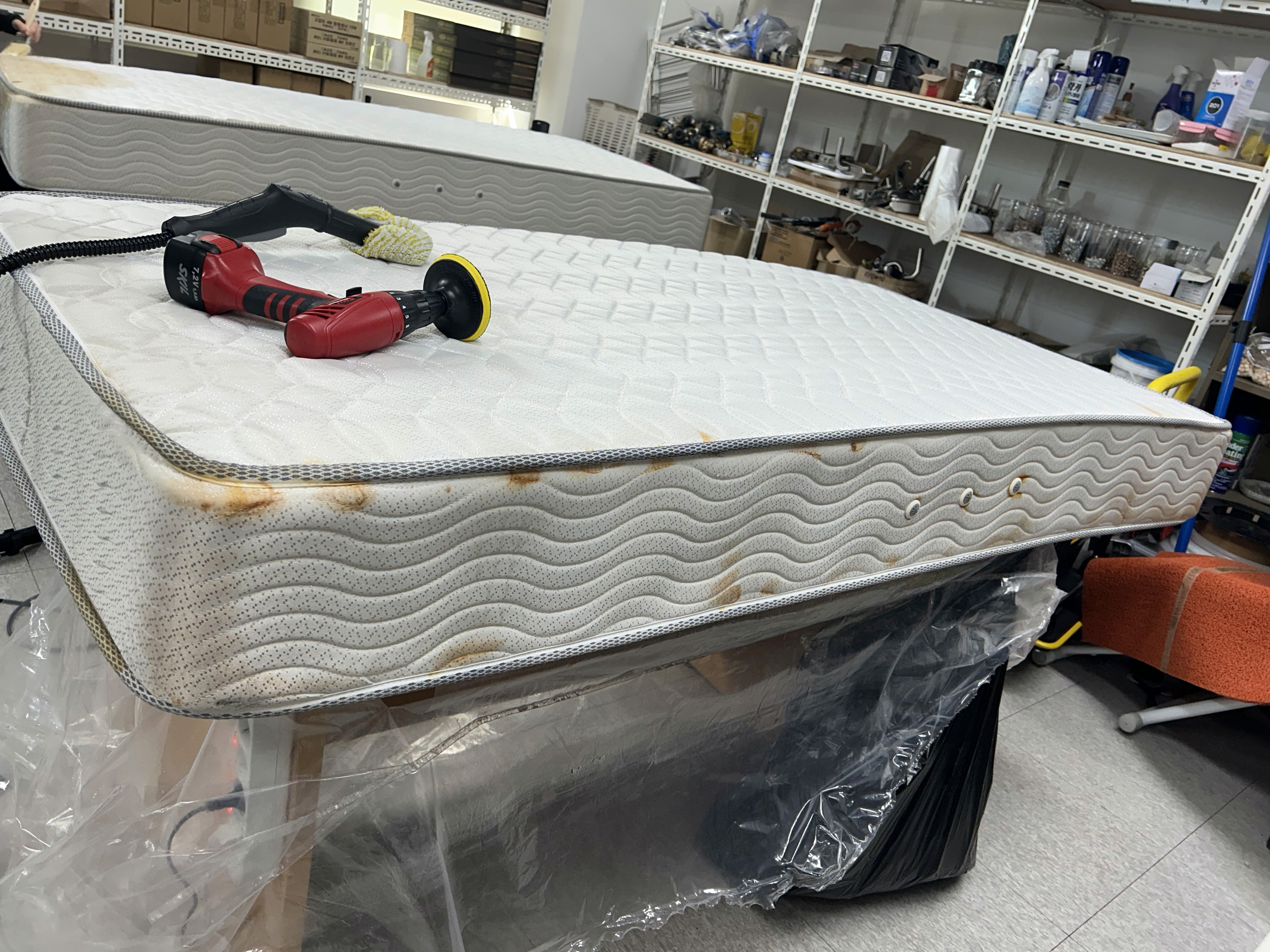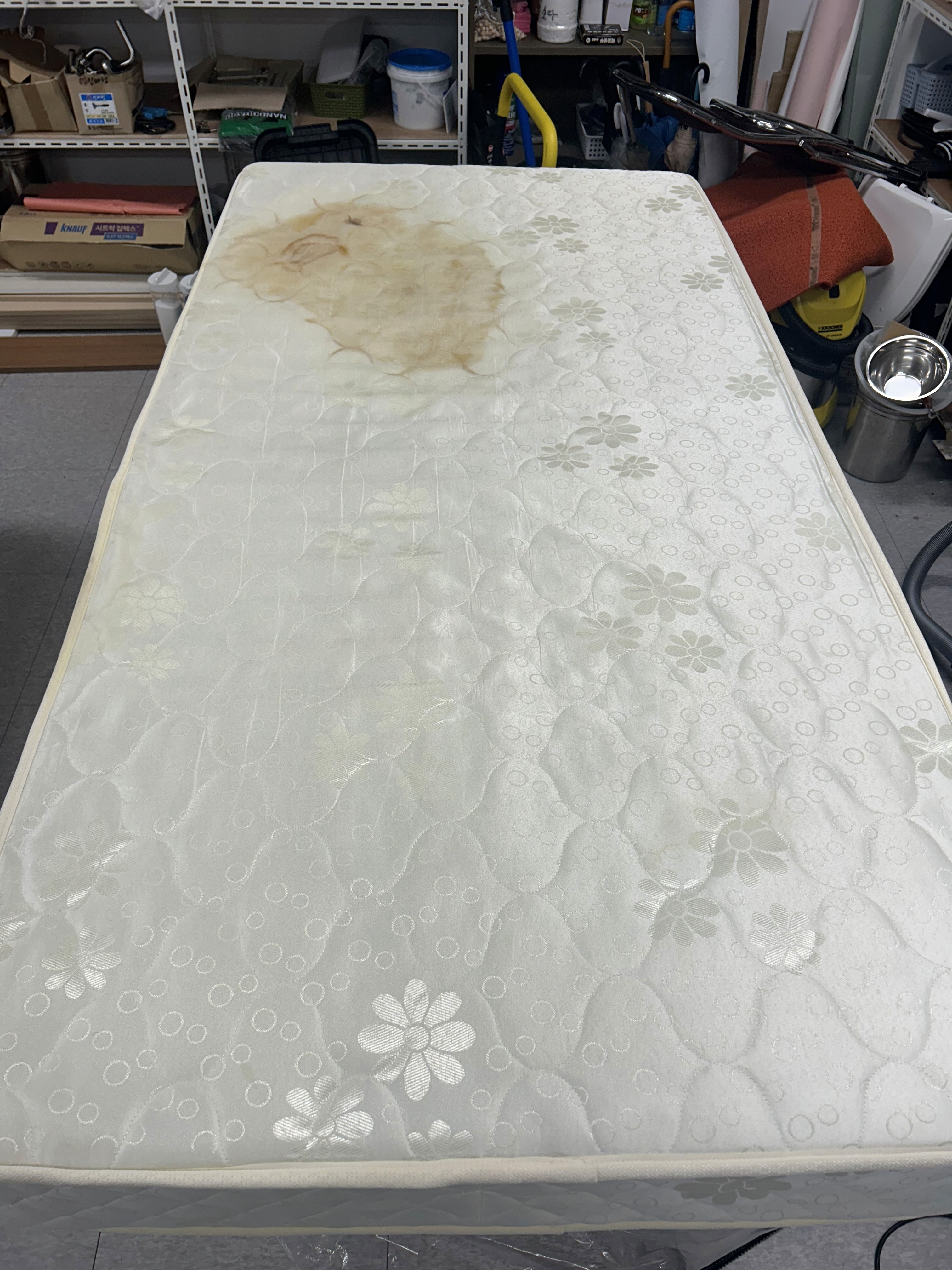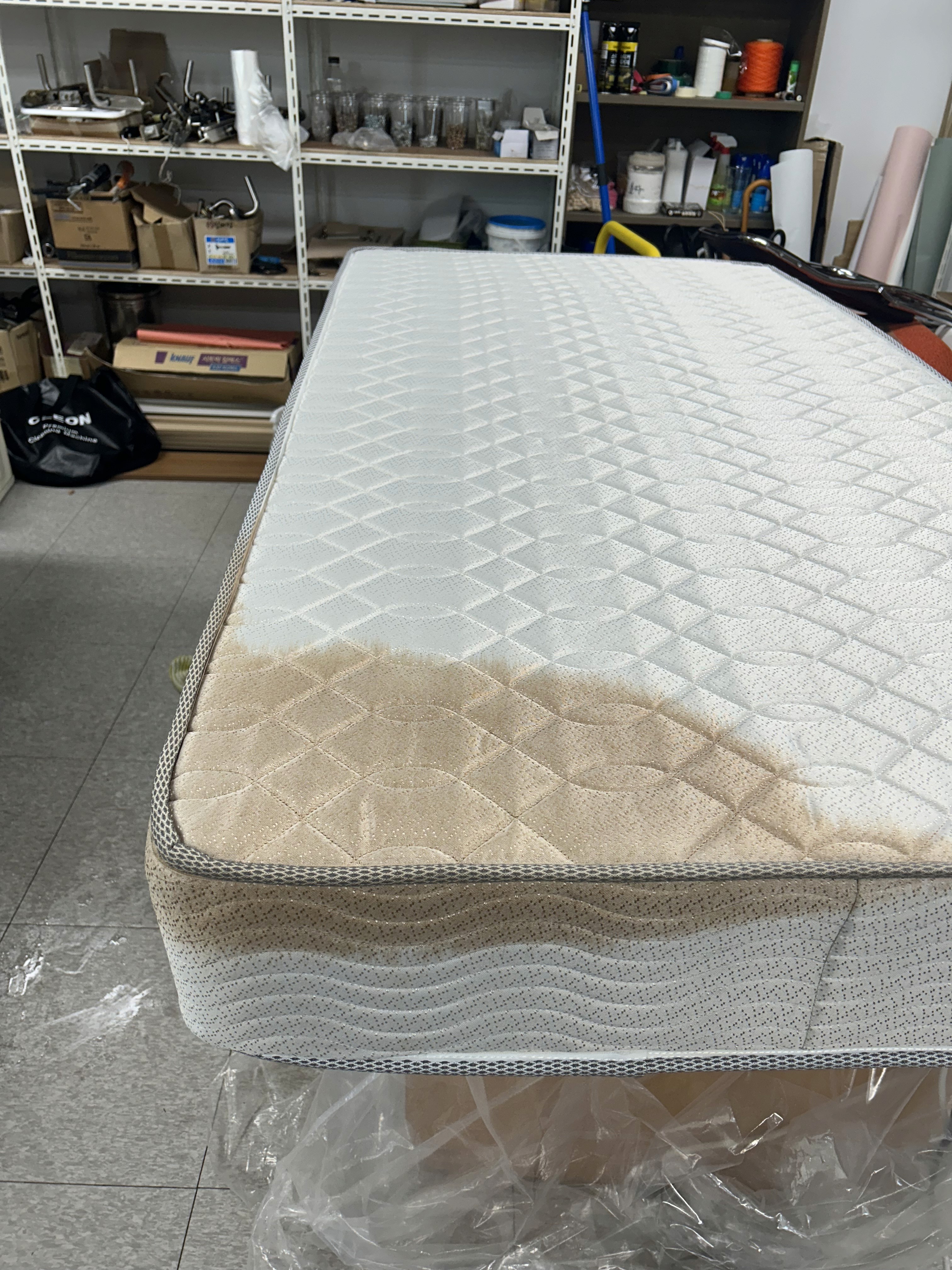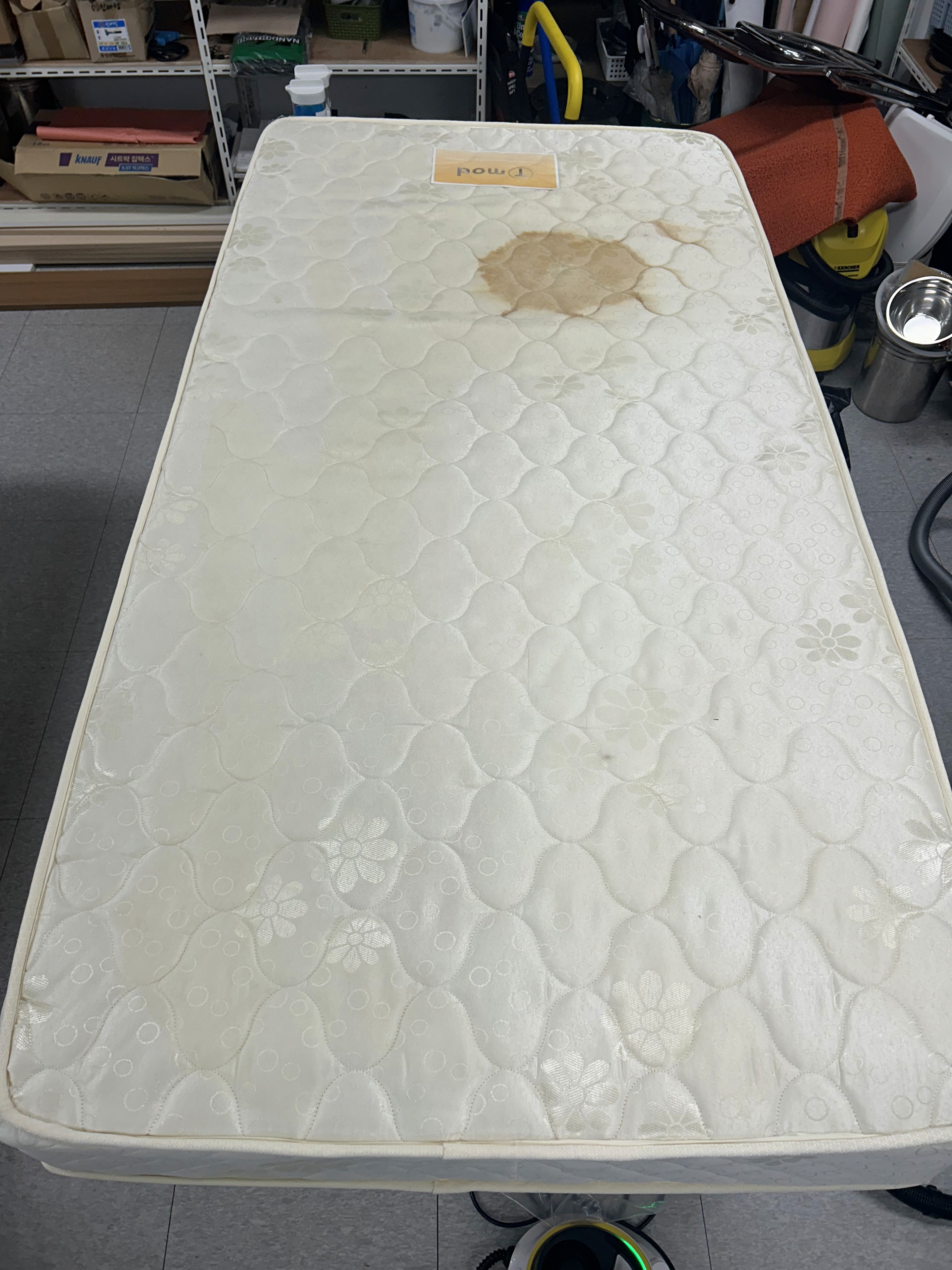 장기간 사용된 매트리스로 얼룩이 많아 전체 케어를 요청하신 상황이었습니다.