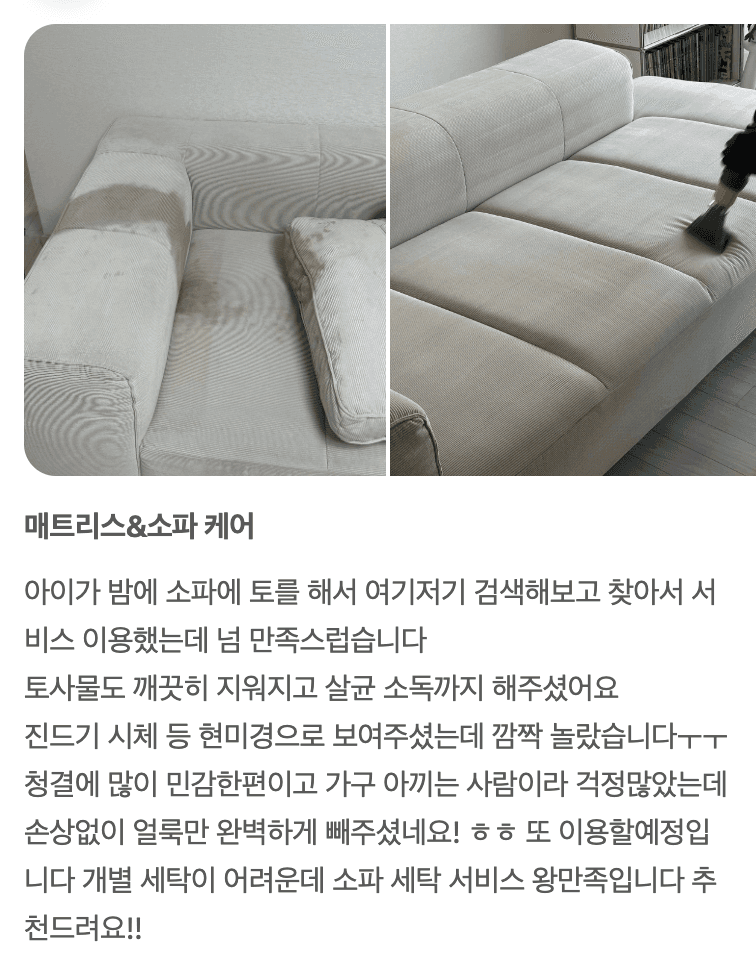 아이가 실수한 구토 자국 모두 제거해드렸습니다.
