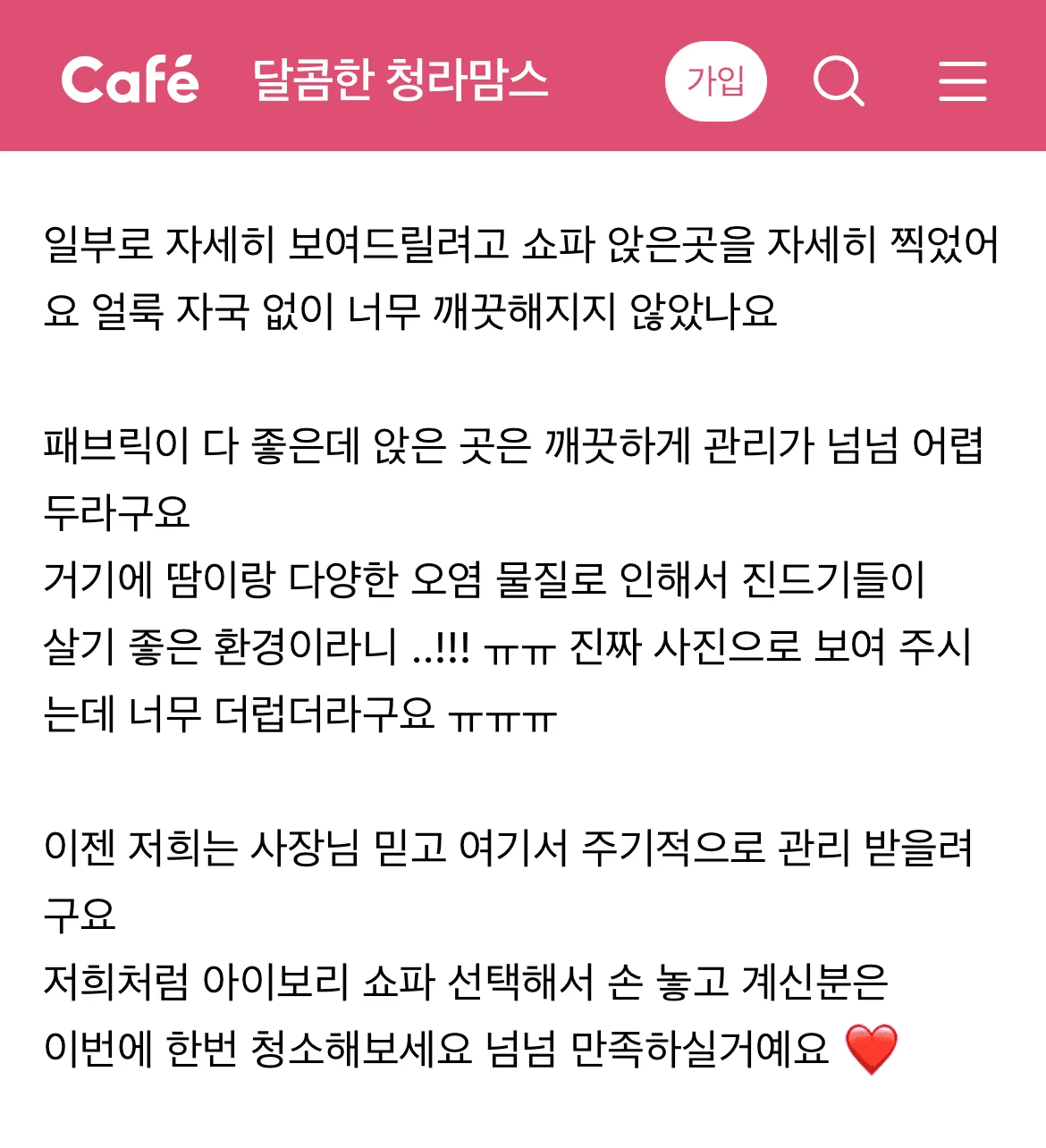 신생아 출산 후 3인 소파 생활 얼룩 제거